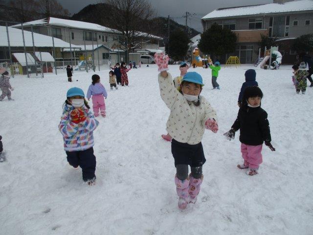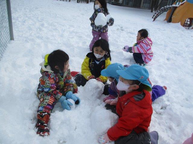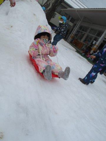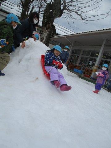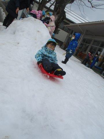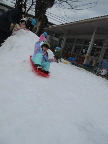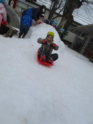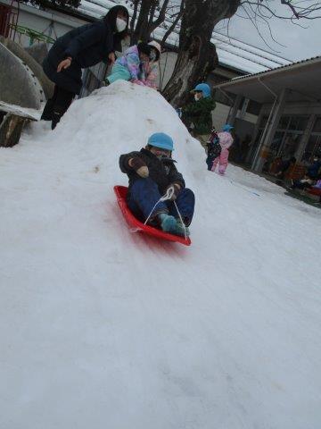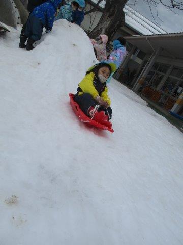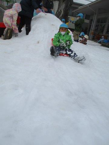 二月初めに待望の雪あそびをしたにじぐみさん。雪をなげたり、そり遊びをしたり、雪だるまを作ったりと大喜びの子ども達でした。