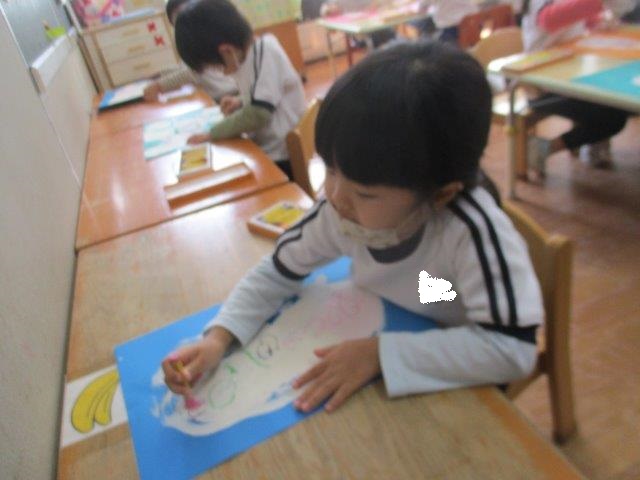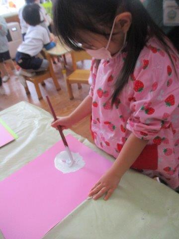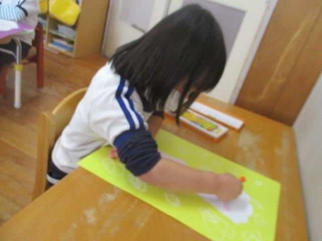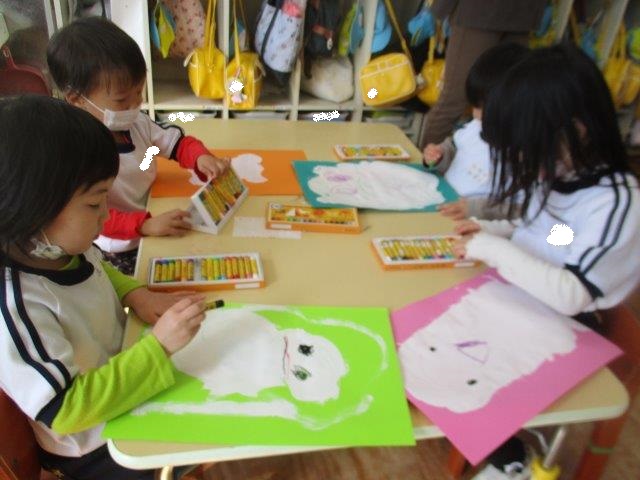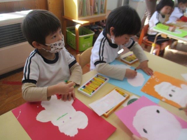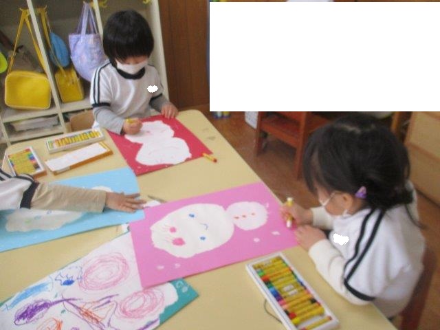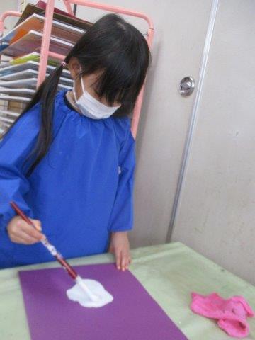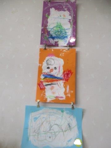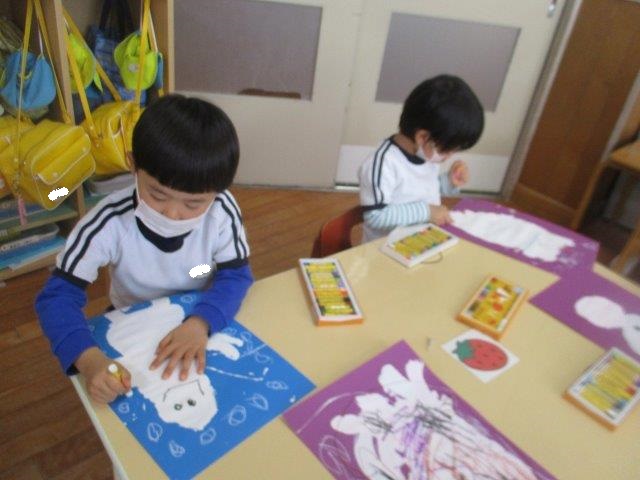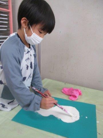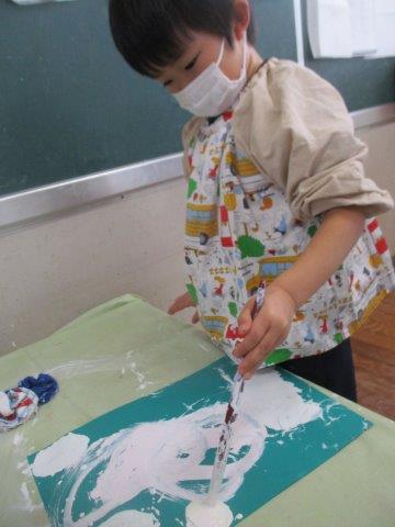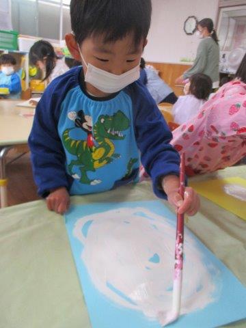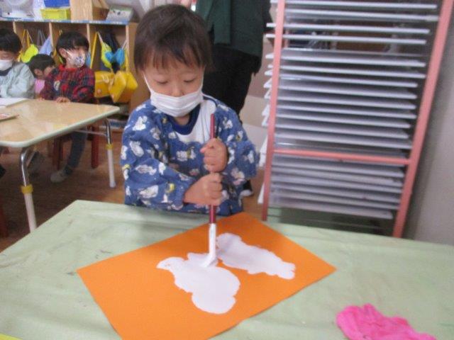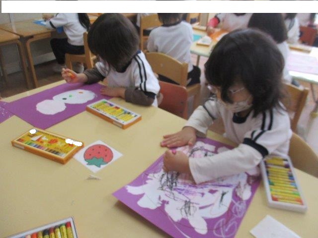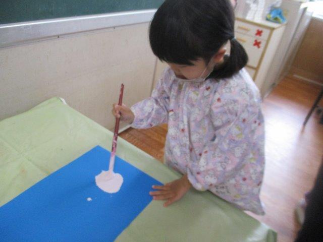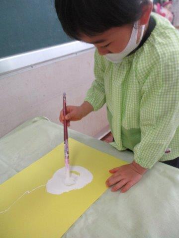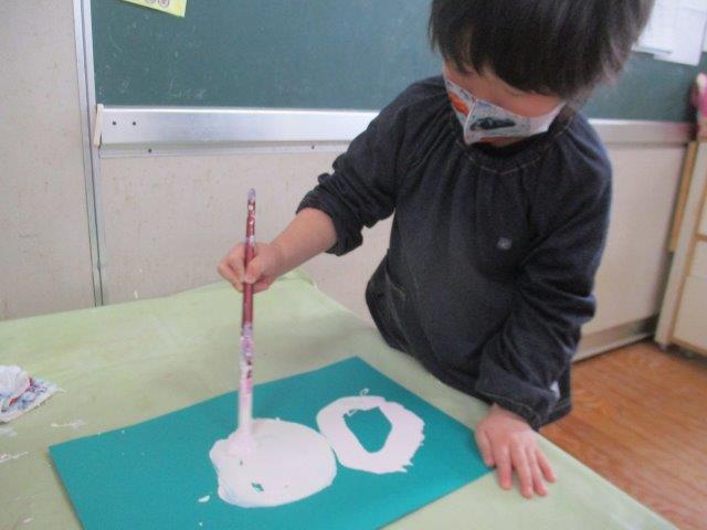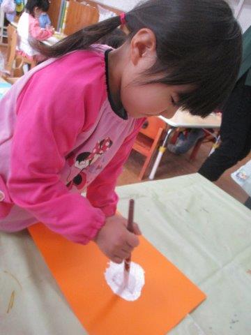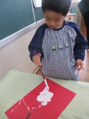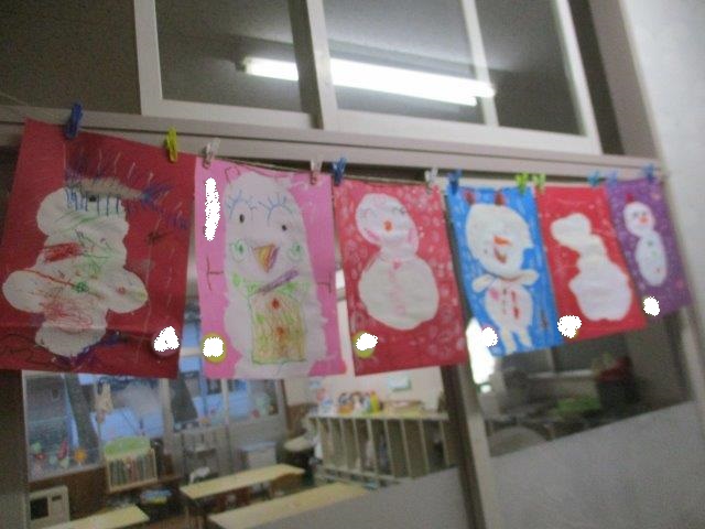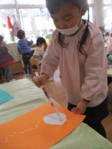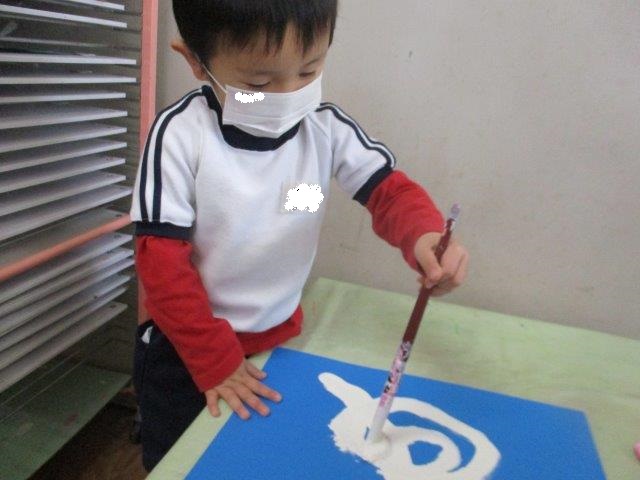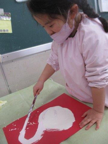 雪遊びを満喫したあとは、筆を使って雪だるまを描きました。