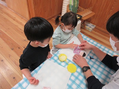 できることも多くなり、製作も楽しさが増してきています。一人ひとりの成長が見られ、とっても楽しい時間でした!
