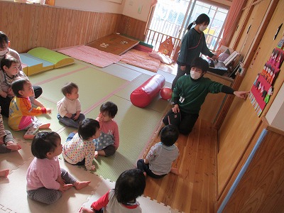 ひなまつりがどのようなものなのかを『うれしいひなまつり』の歌を歌ったりパネルシアターを見たりして知りました♪