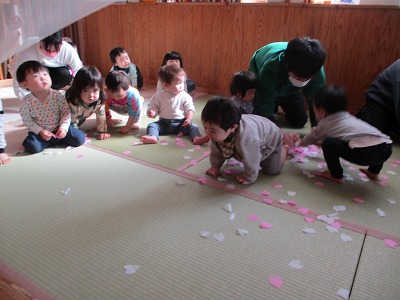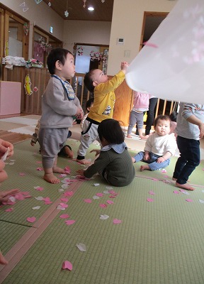 落ちた花びらを拾ってまた乗せようとする子どももいました(^^)