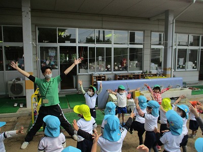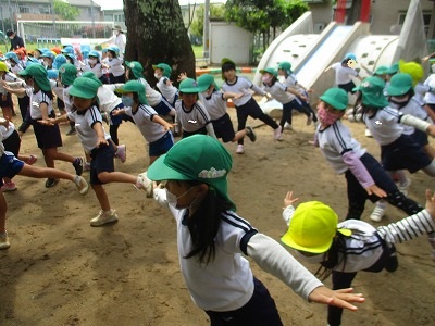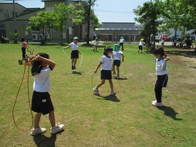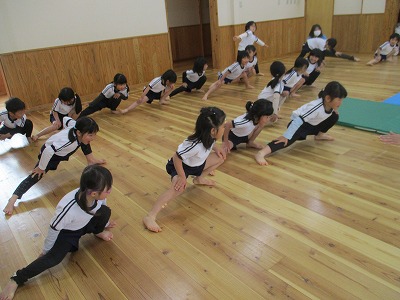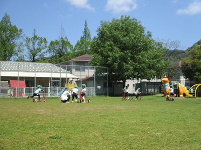 天気のいい日は、広いグランドで毎日体を動かして遊んでいます。体育教室も始まりました。