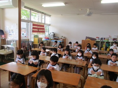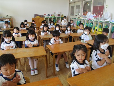 みどり園で一番お兄さん、お姉さんになって張り切って生活している子どもたち。体操、マラソン、外遊び、製作活動…と毎日楽しく過ごしています。体操では、お当番さんが前に出て、体操のお手本になっています‼
