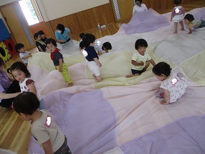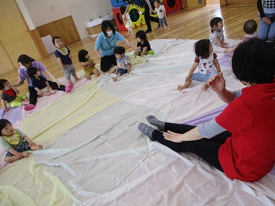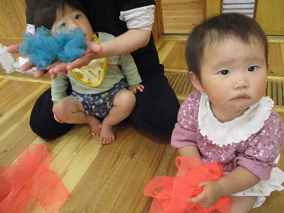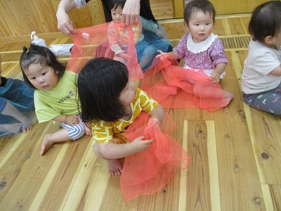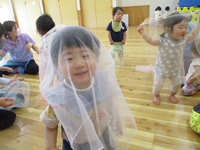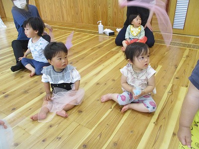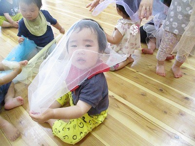 音楽に合わせてオーガンジーのスカーフをひらひら~