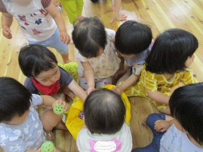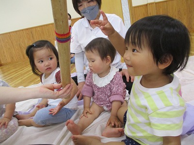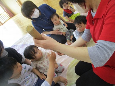 大きなバルーンや初めて見るレインスティックに大喜びな子ども達😆