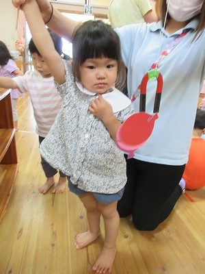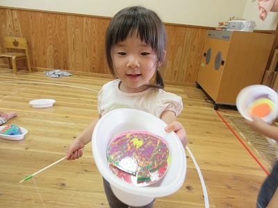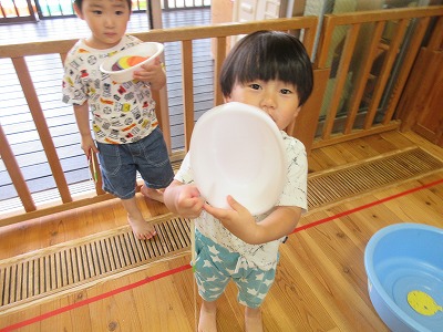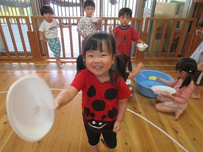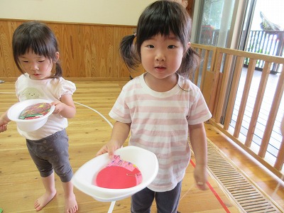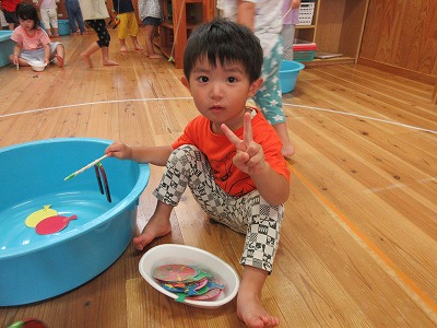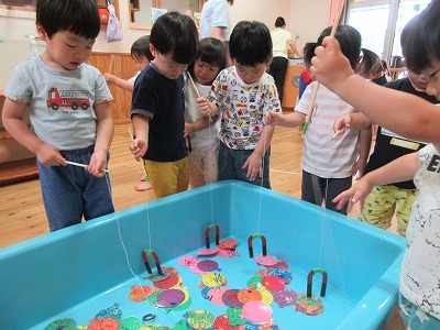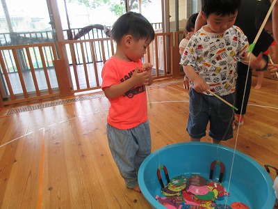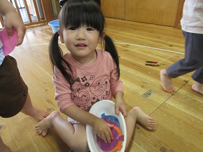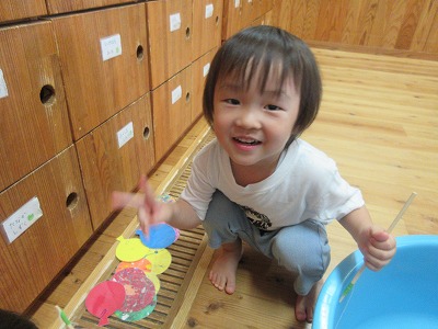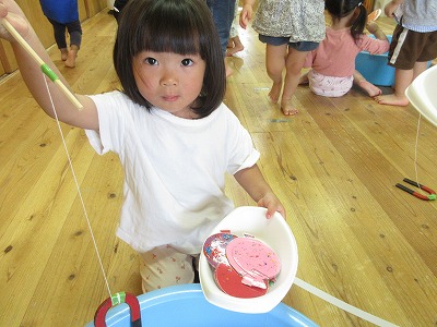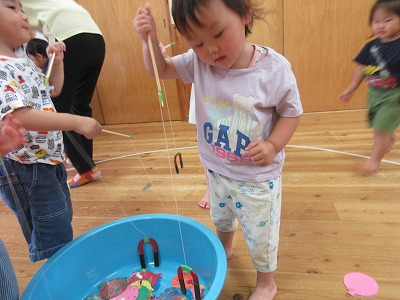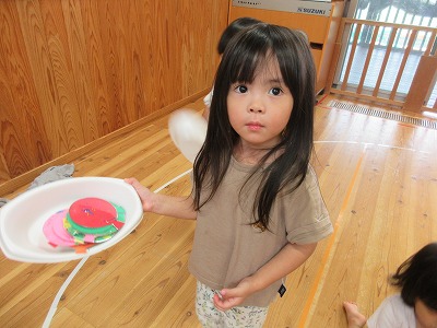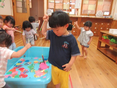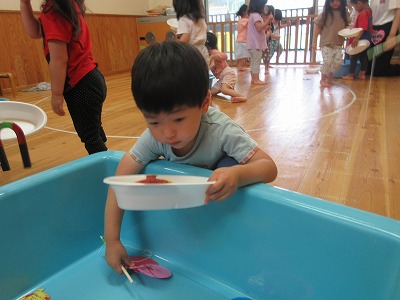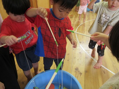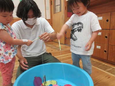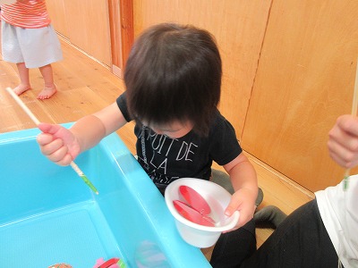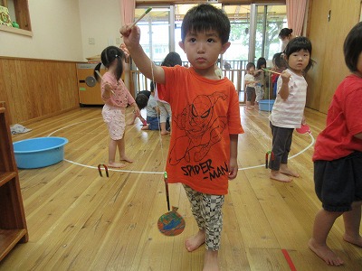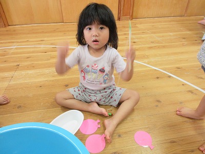 うさぎ組で製作したヨーヨーを使ってヨーヨー釣りをしました。