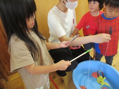 始めは、なかなか釣ることが難しかったヨーヨー釣りでしたが、終わるころには上手に釣っている子どもたち