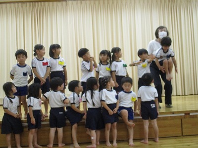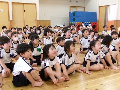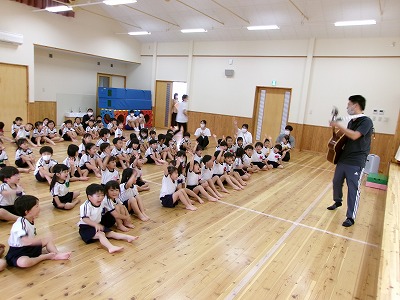 6月の誕生会・お楽しみ会がありました。まずは、ギターに合わせて「はーい♬」と元気にお返事‼