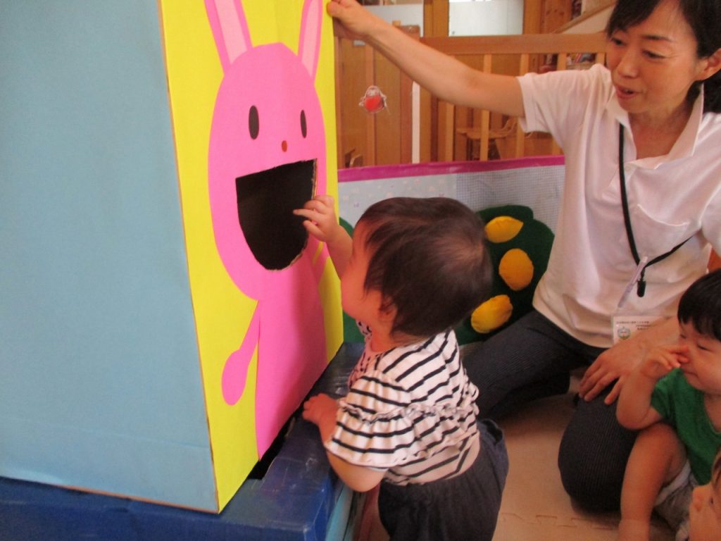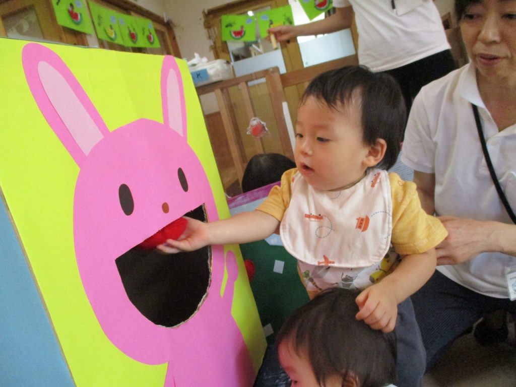 みんな上手にうさぎさんのお口の中に入れています♪