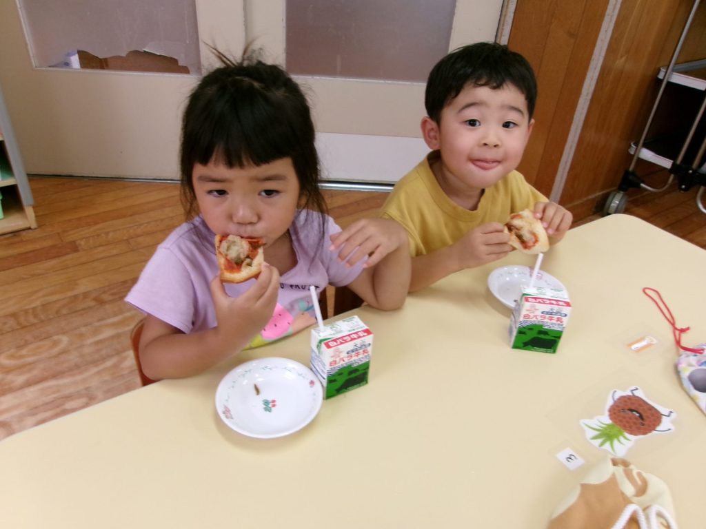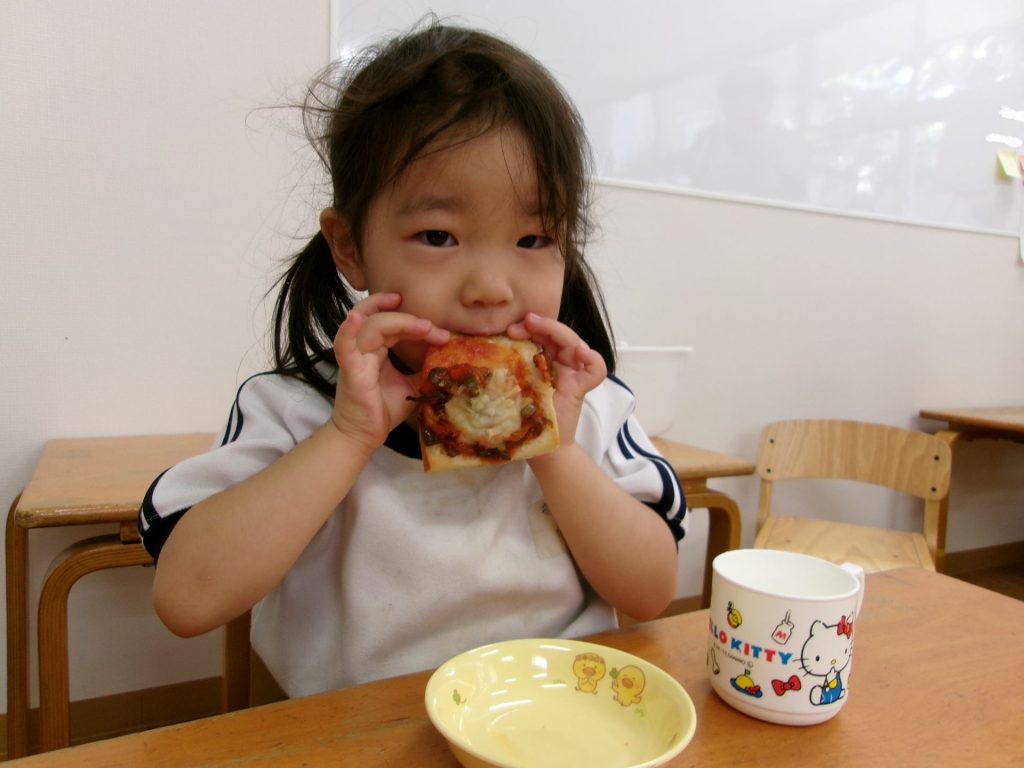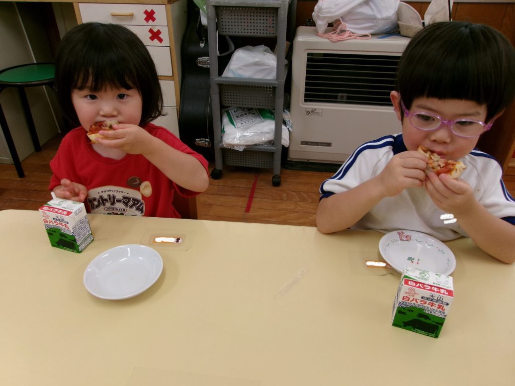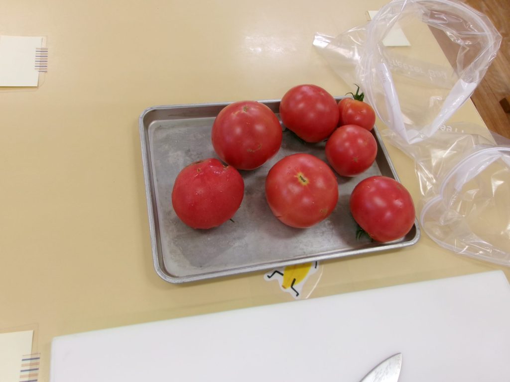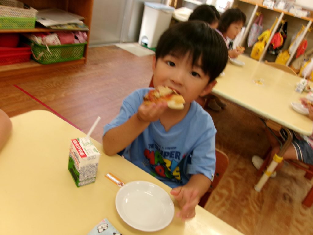 みんなで育てたトマトを使って、みんなでクッキングしたピザはと~ってもおいしかったね😋