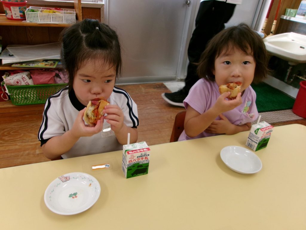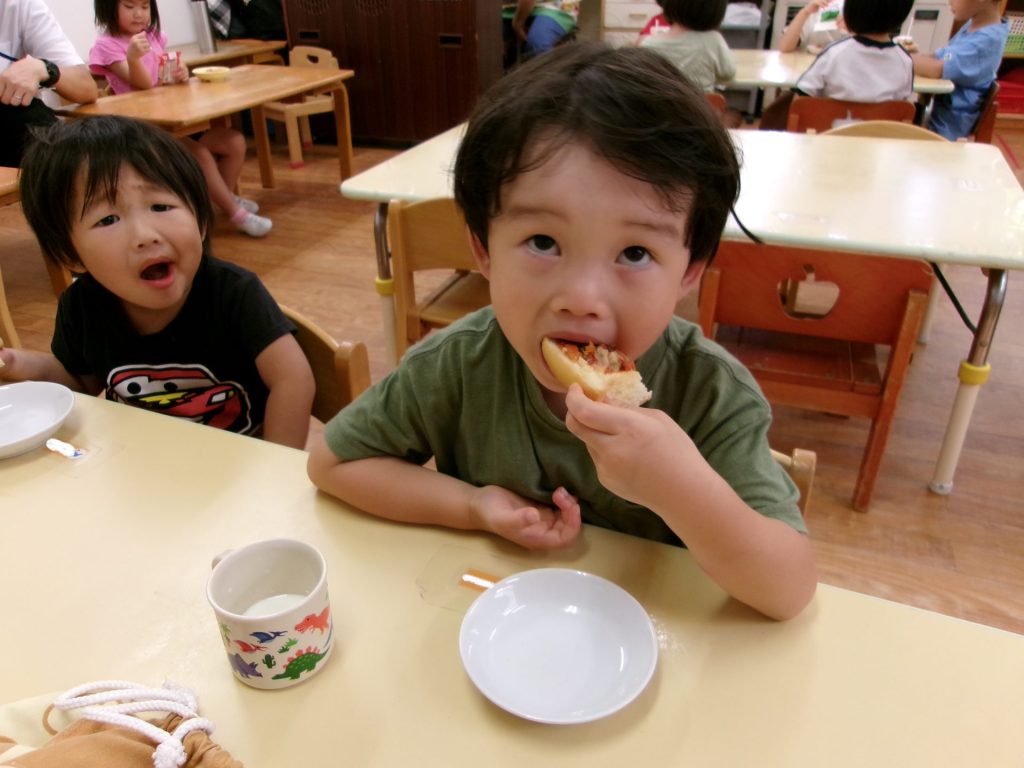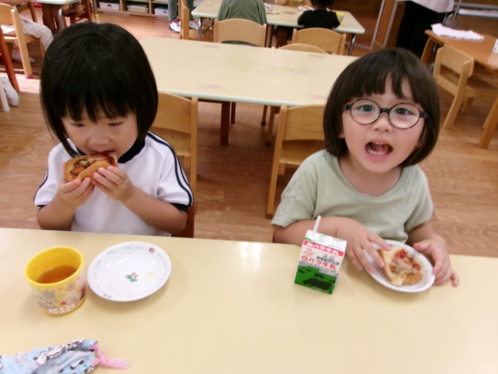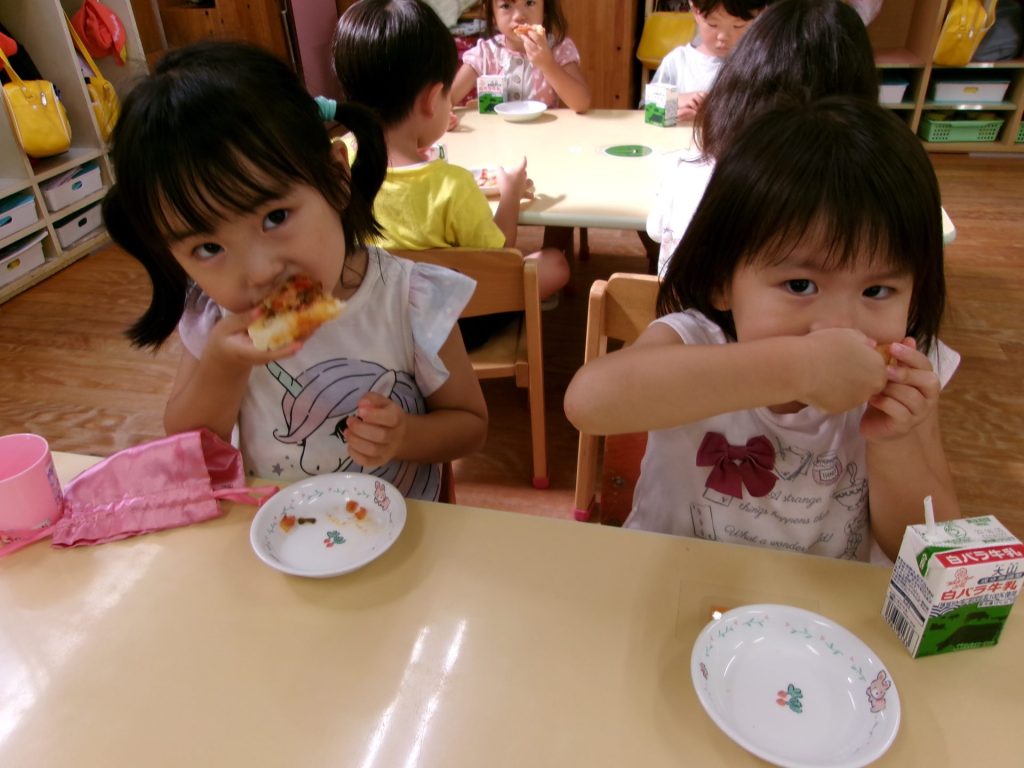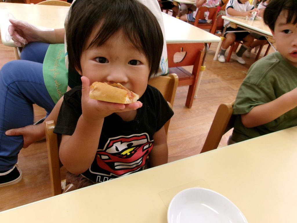 みんなで育てたトマトを使って、みんなでクッキングしたピザはと~ってもおいしかったね😋