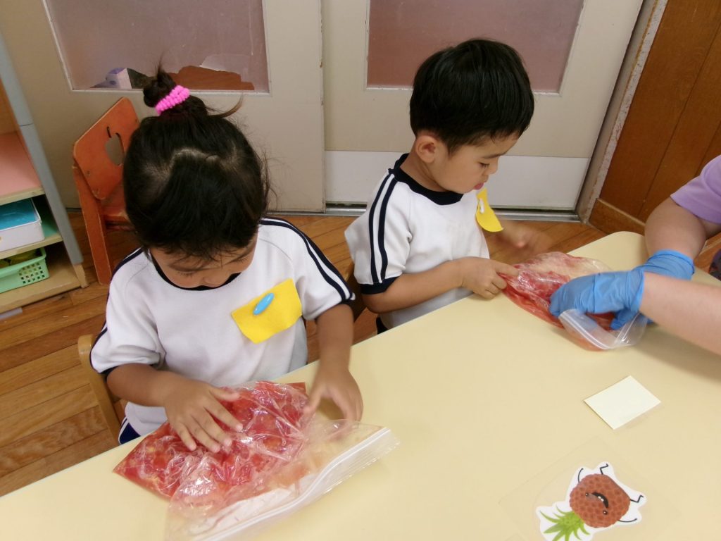 ジップロックに入れたら子どもたちの出番!