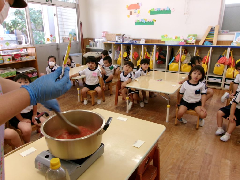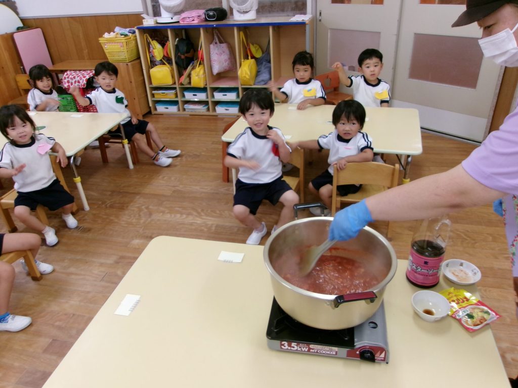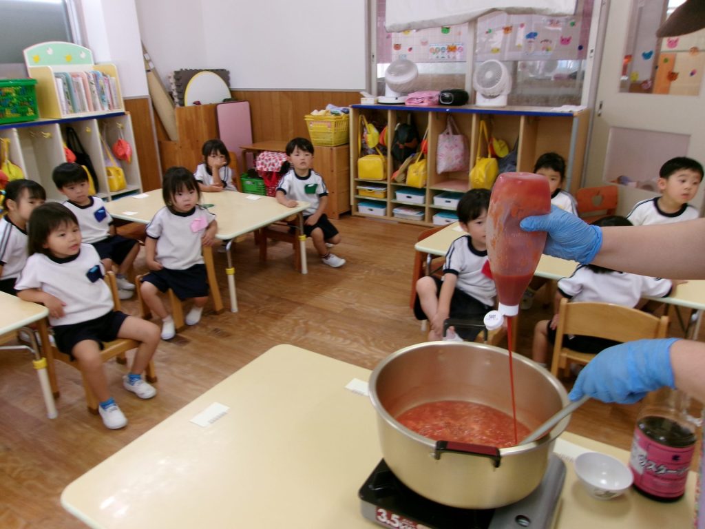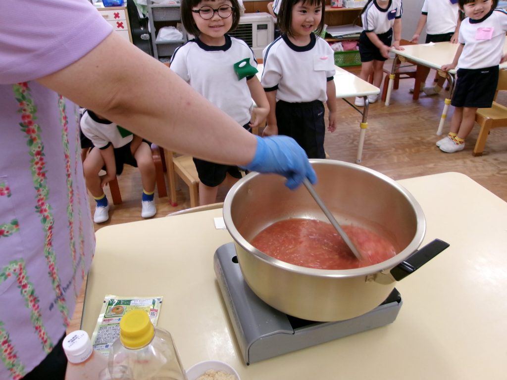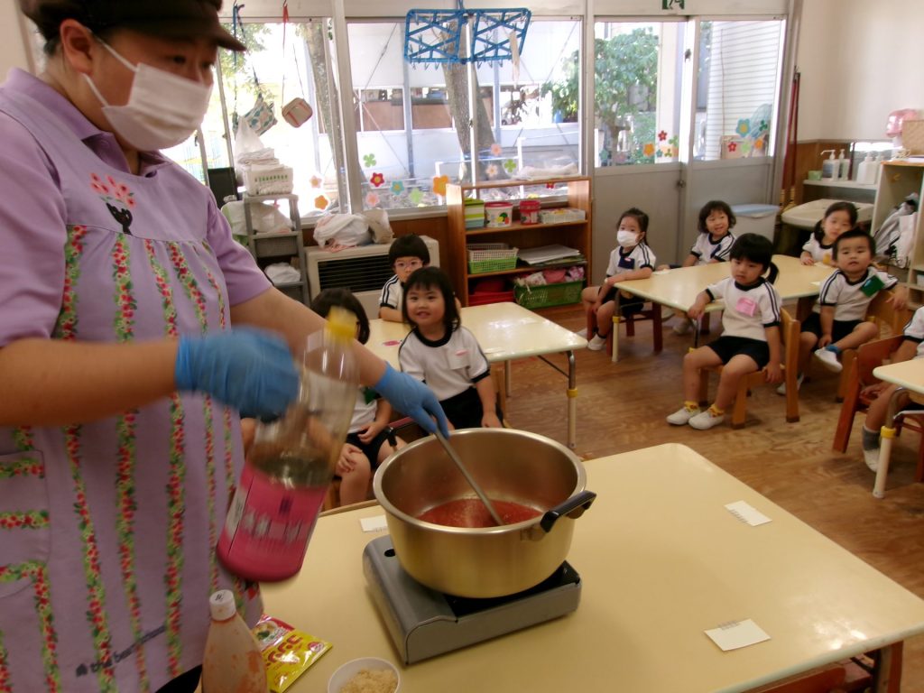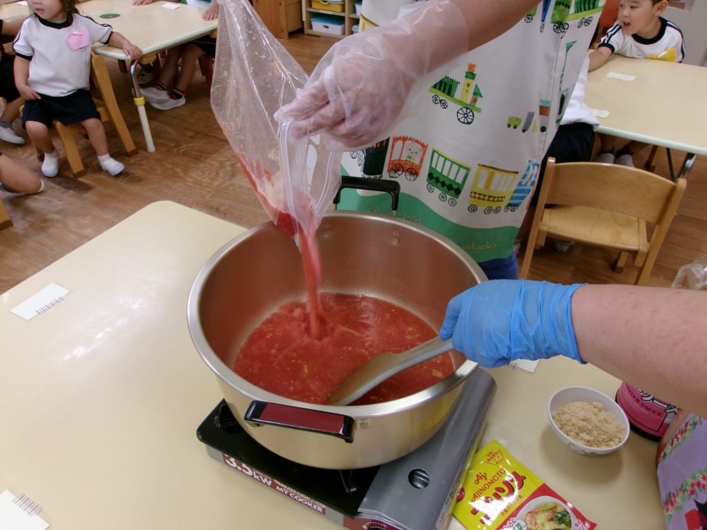 ソースができたらここからは給食の先生にバトンタッチ!