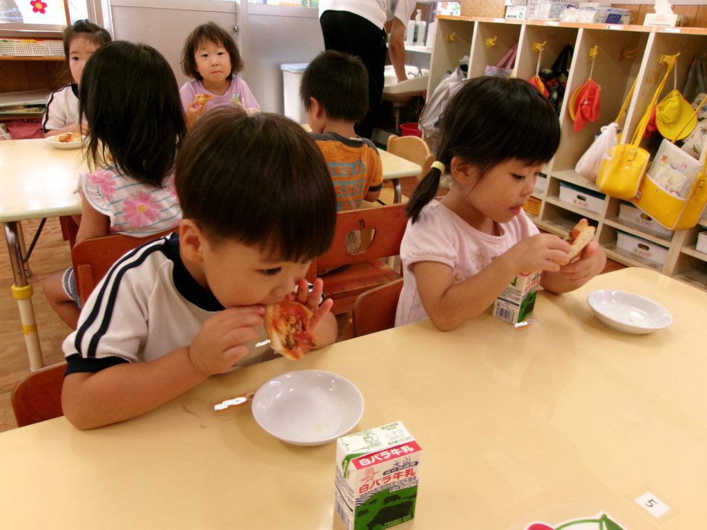 保育教諭が小さく切り分け・・・