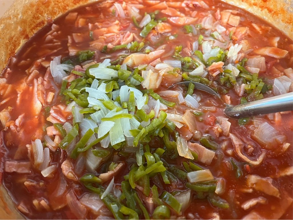つぶしたトマトをお鍋でグツグツ煮ていきます。