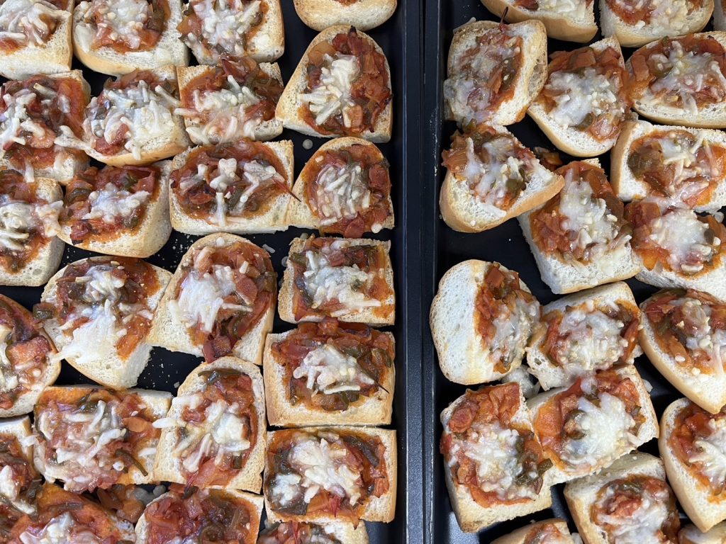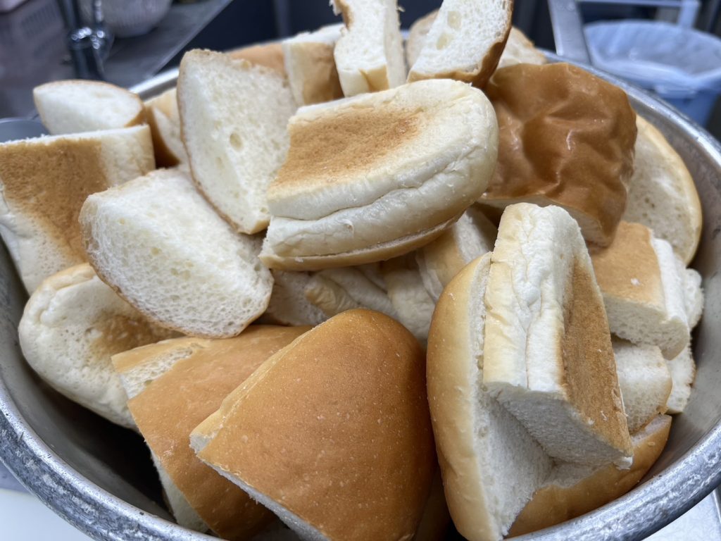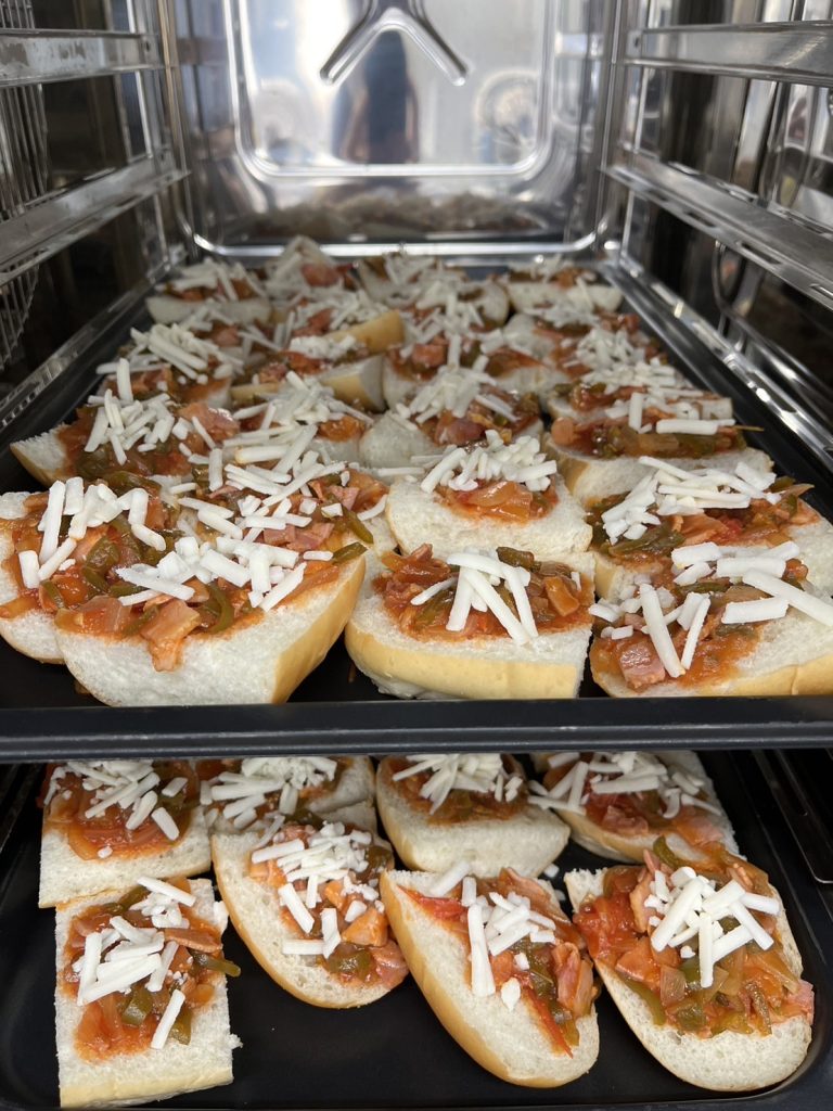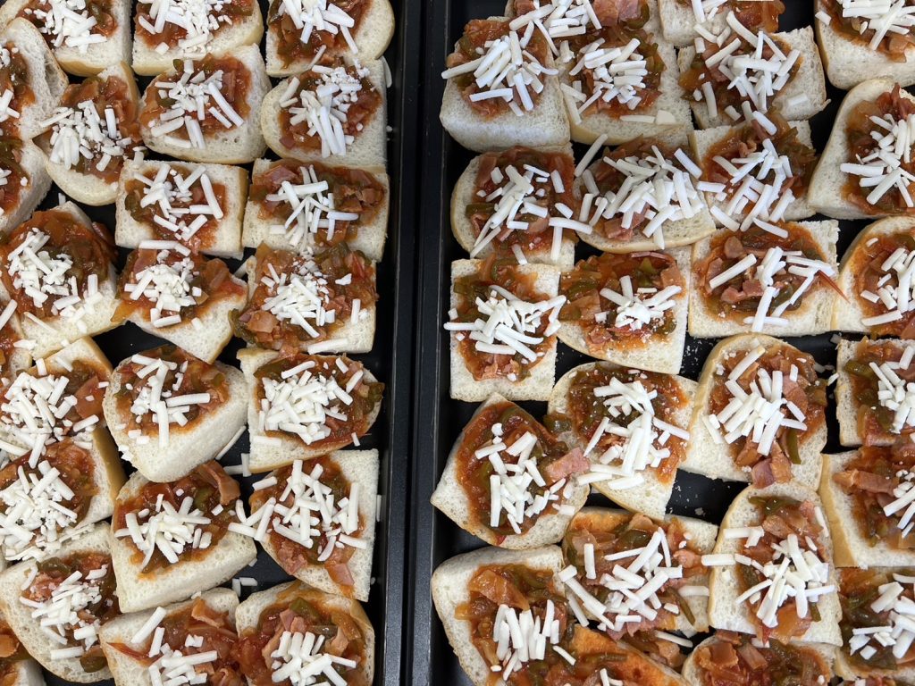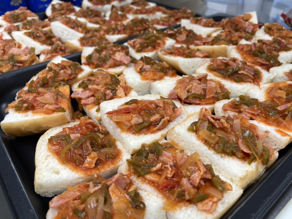 パンにソースをのせていきます。