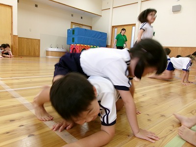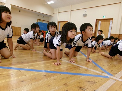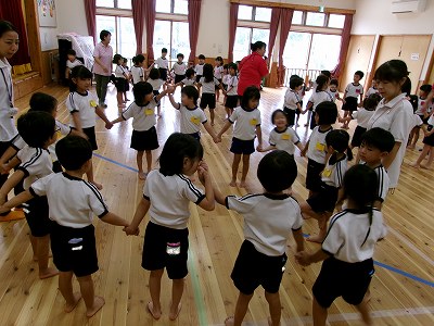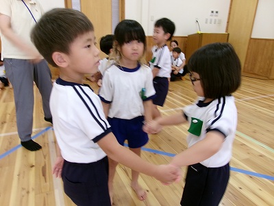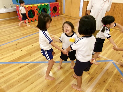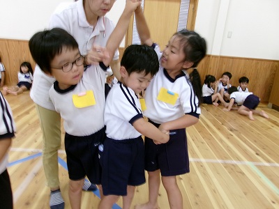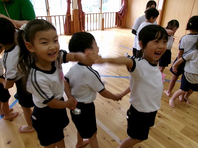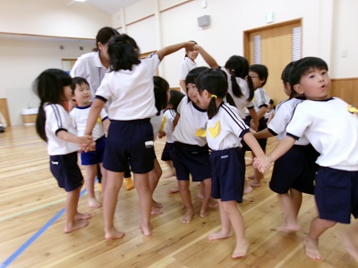 最後に、6つの異年齢なかよしグループで「なべなべそこぬけ」の歌に合わせて「はいはいトンネル」をしました!
