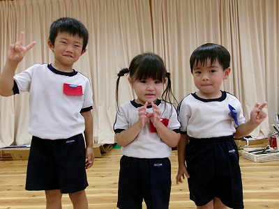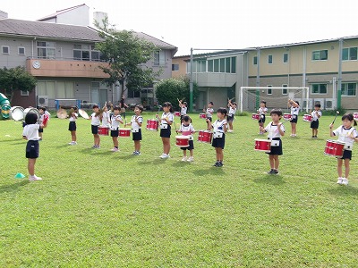 その後は、先日の運動会を・・・ということで、ほし組さんの鼓隊!つき組さん、にじ組さんの目がキラキラしていました!『大きい太鼓がしてみたい!』『白い手袋のがしたい(指揮)』『ピアノが弾きたい』などなど憧れや期待に満ちた言葉がたくさん聞かれました。