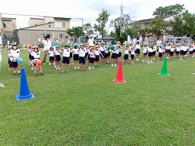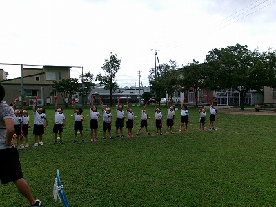 そして、みんなで『しゃかりきBANBAN』体操を行い、体をほぐしました。