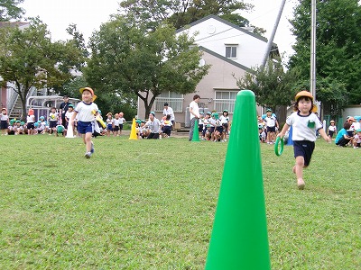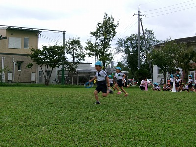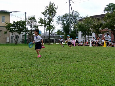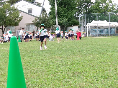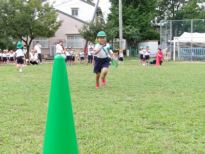 最後は、異年齢チームによる全員リレー!!最初はつき組さん。