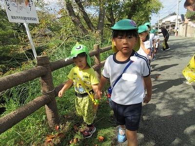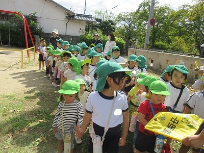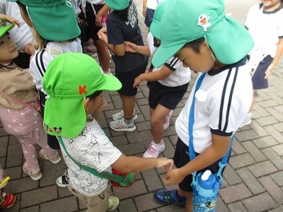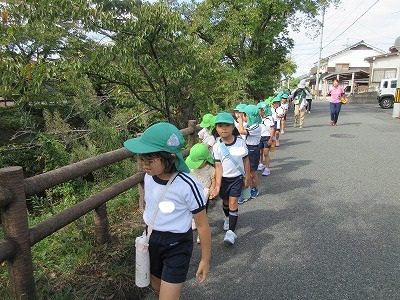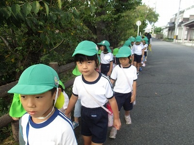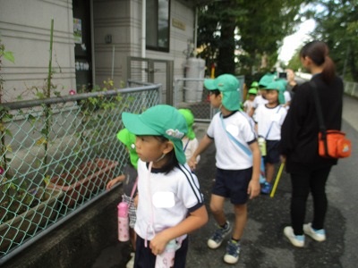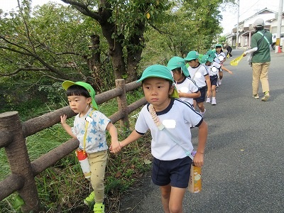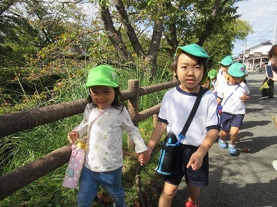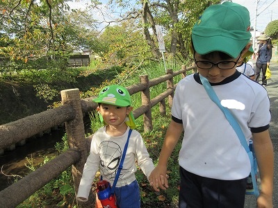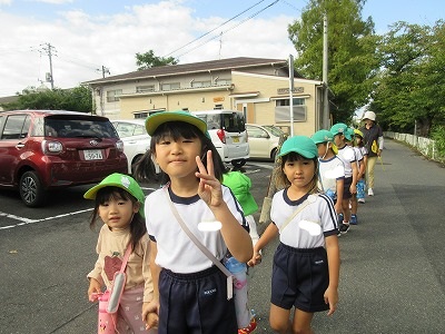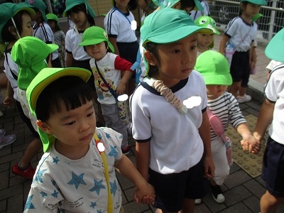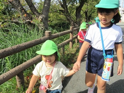 ほし組はうさぎ組の歩くペースに合わせたり、車道側を歩いたりと自分たちで考え、うさぎ組の子どもたちが危なくないように歩いてくれました。
