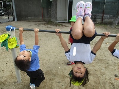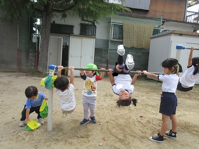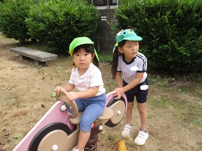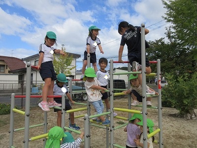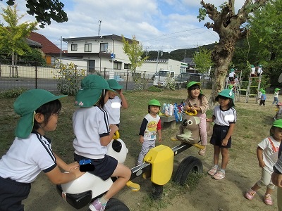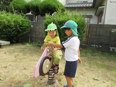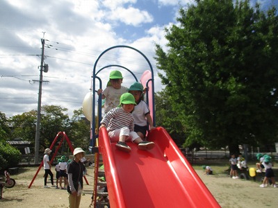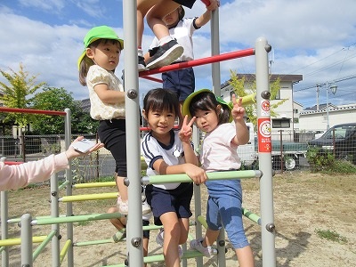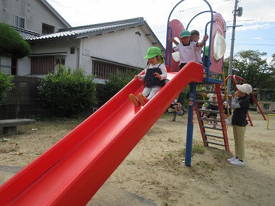 ほし組もうさぎ組の手を引いて、色々な遊具を一緒に楽しんでいました。