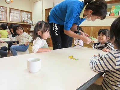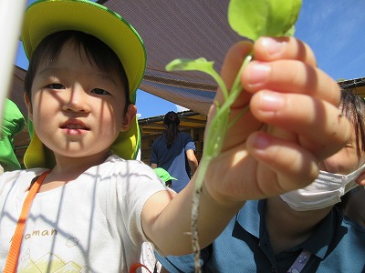 園長先生が持ってきてくださった白菜を間引いた葉っぱを