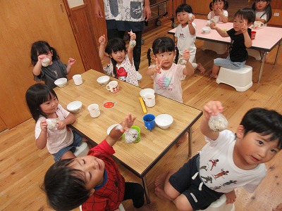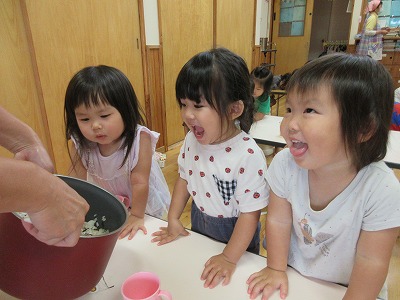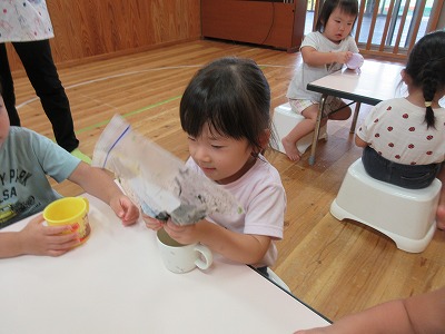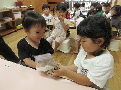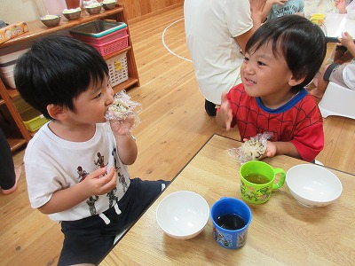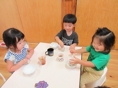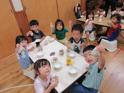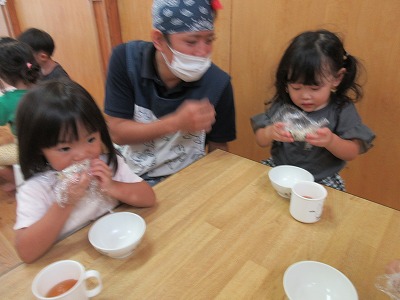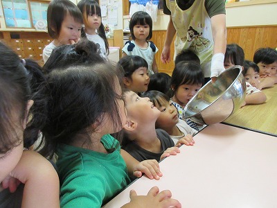 「きこえる!!」「ジューって言っとる!」「おいしいおとがしとる!」