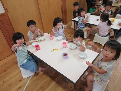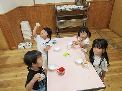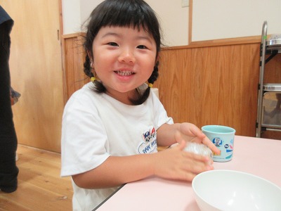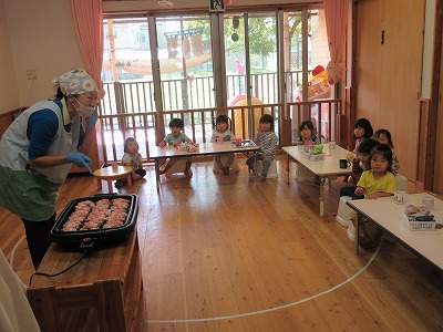みんなが外で走り回って帰ってから、ホットプレートで焼きます。