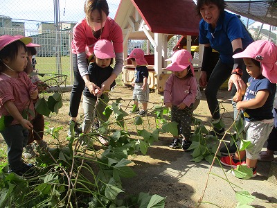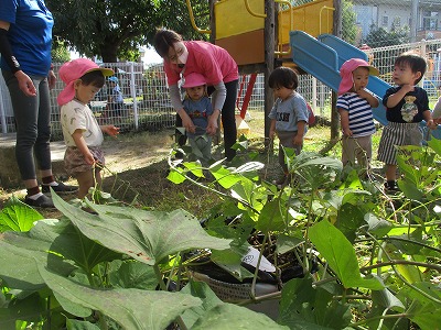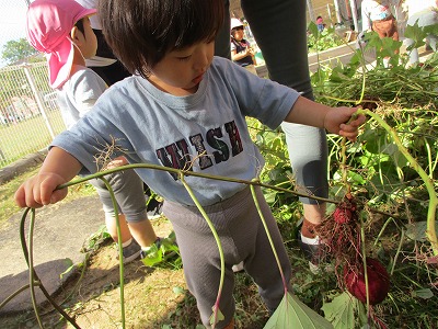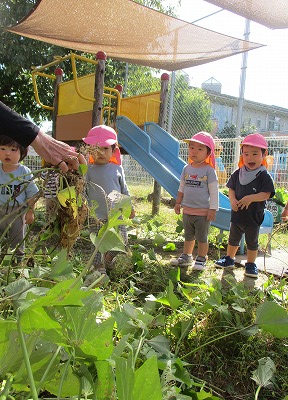 春から育てたさつまいものつるがぐんぐん育ち、先日,いもほりをしました。