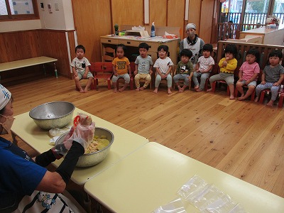 「わぁ~」と大喜びな子どもや不思議そうな子ども達。