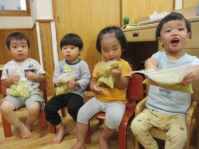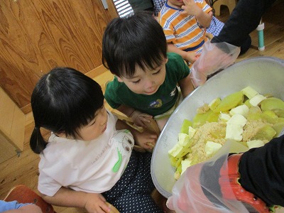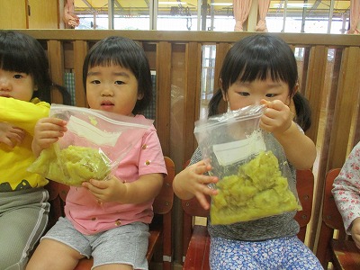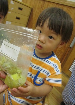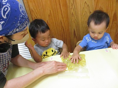 興味深々な子ども達。ジプロックにいれたものを子ども達ももみもみとしました。