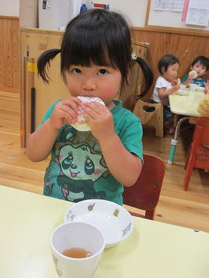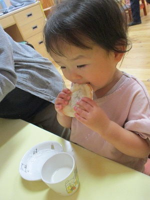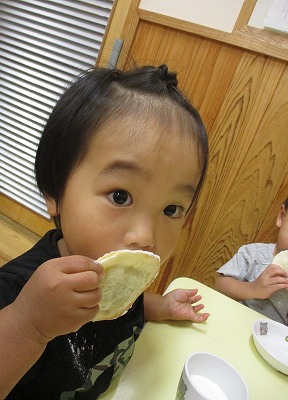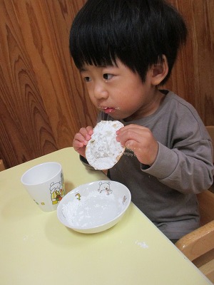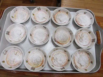 そして、お昼寝中に焼いてもらい、粉砂糖をふりかけておやつにいただきました。