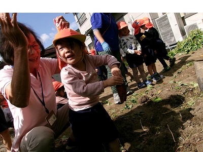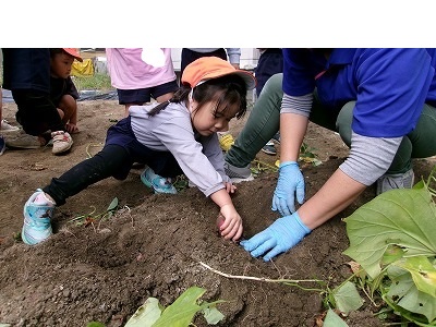「こっちにもあったよ!」「とれないよ~」「やったぁ!おっきいおいも!!」など楽しい声が次々聞こえます。