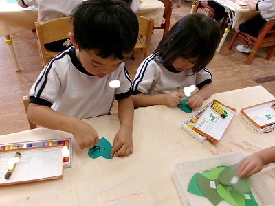 画用紙いっぱいのおおきなおいもを描いたり何個も描いたり、すてきなさつまいもを描くことができました。