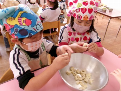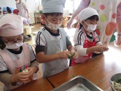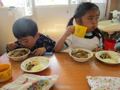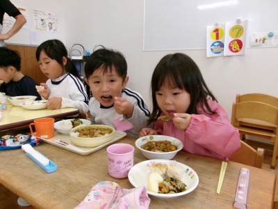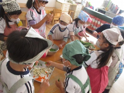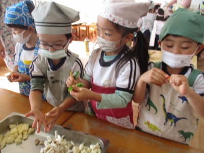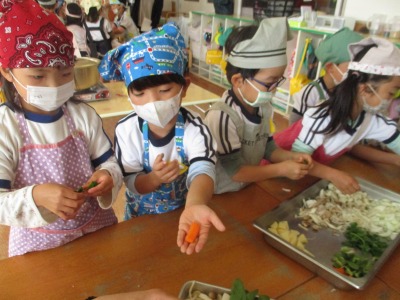 にじ、つき、ほし組の子どもたちでカレー作りをしました🍛🥩