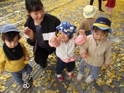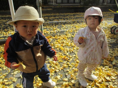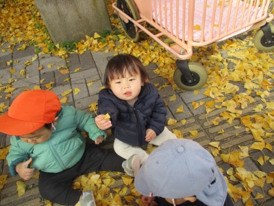 ひよこ組のみんなでイチョウの葉を見に行きました!