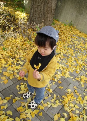 イチョウの葉を見せてくれるお友だちもいました(⌒∇⌒)