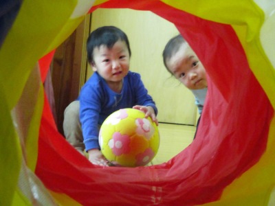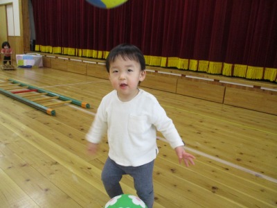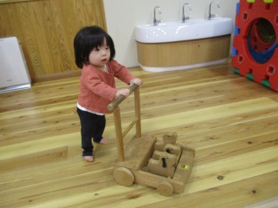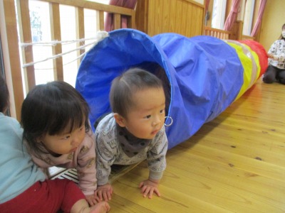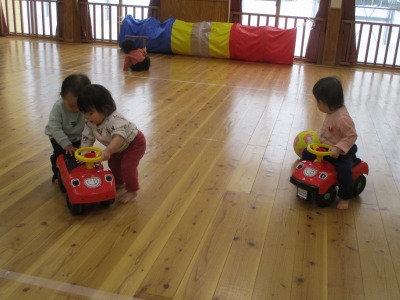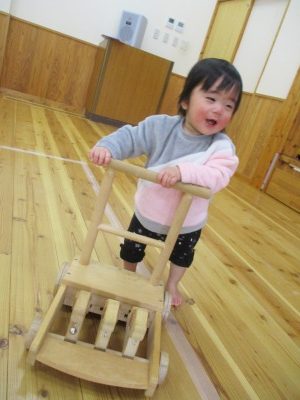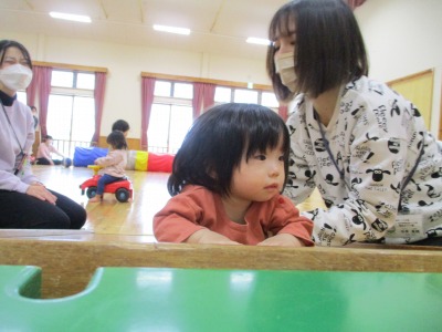 歩ける子どもたちが増え、遊びの幅が広がったり全身を使って遊びも出来るようになったりと楽しいことも増え、楽しく元気いっぱい遊んでいます。