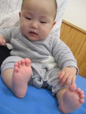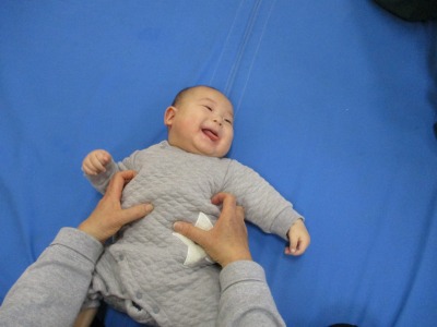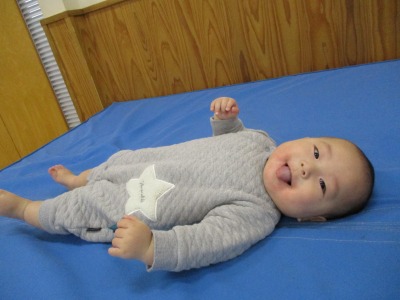 月齢の小さい子どもたちもソフトマットの上で寝転がったり、保育教諭と触れ合ったりして楽しんでいます。