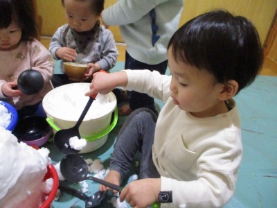 まだまだ厳しい寒さが続く季節なので体調に気をつけながら、室内で体を動かしたり雪で遊んだり楽しんでいきたいと思います。