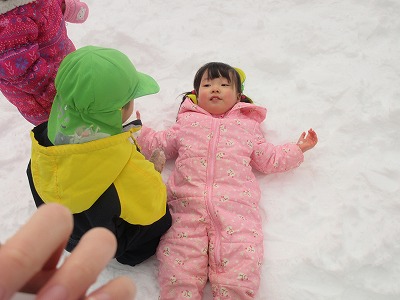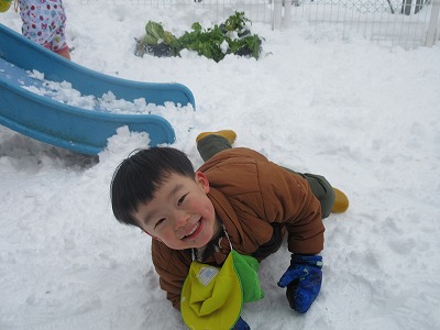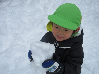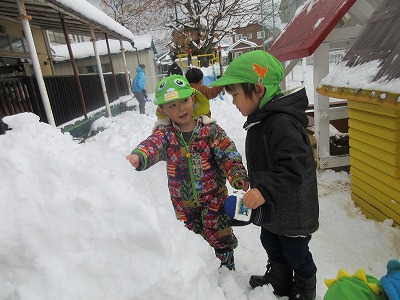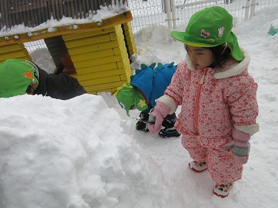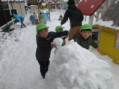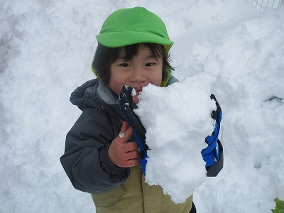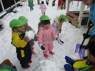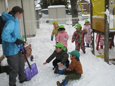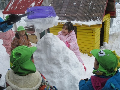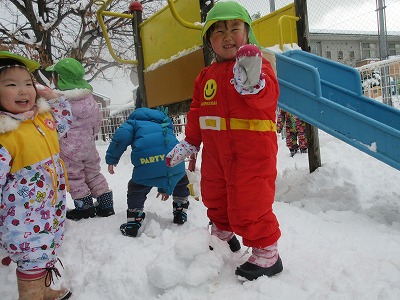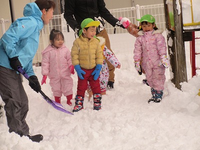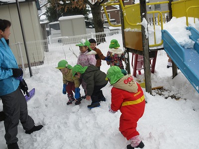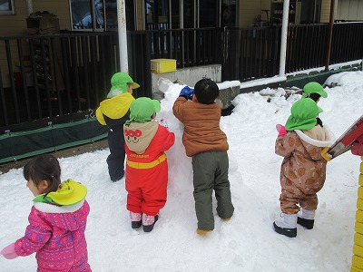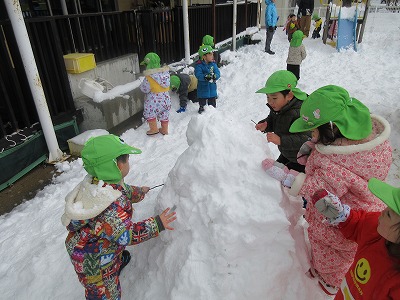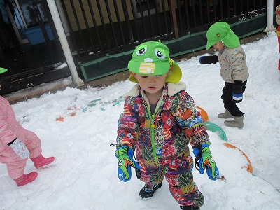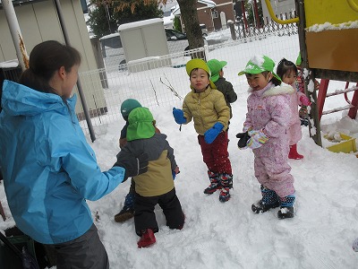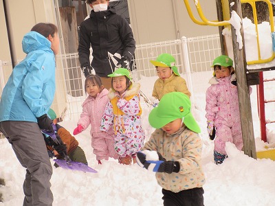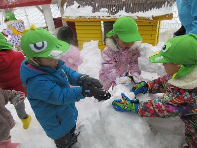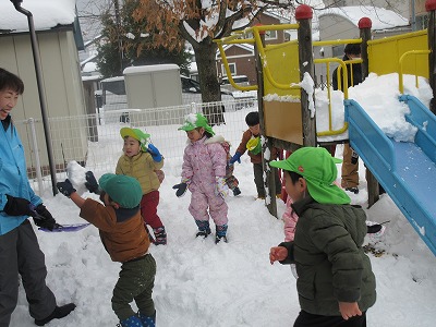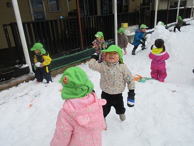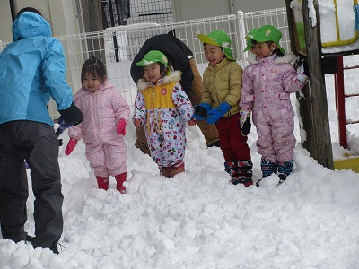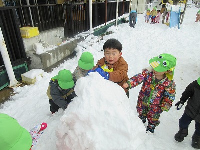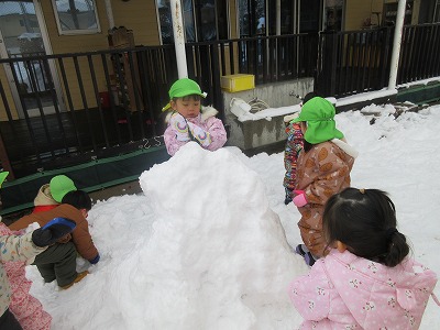 1月下旬、子どもたちが待ちに待った雪が降り、雪遊びをするこのができました。