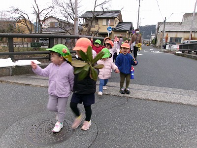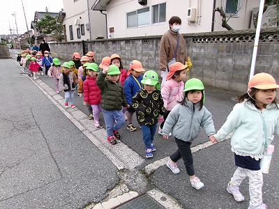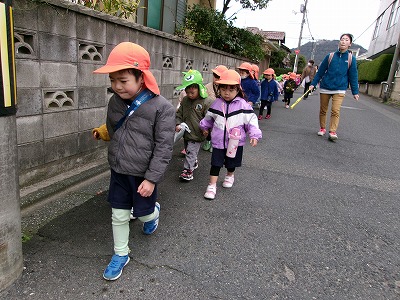 帰りもしっかり手をつないで歩きます。みどり園まであと少し!頑張ろう!!