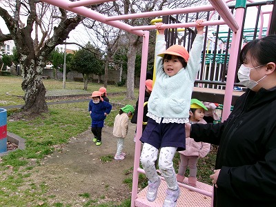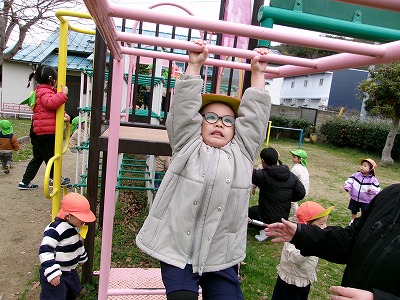 うんていに挑戦!少し前に進める子もいて、ビックリです!!!