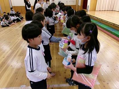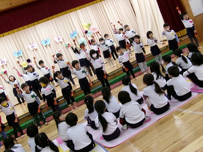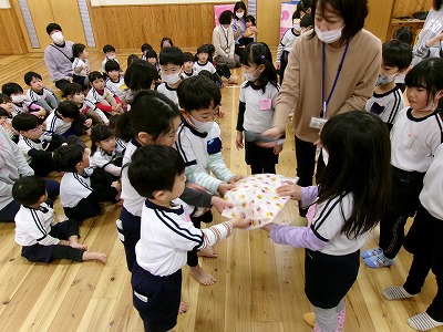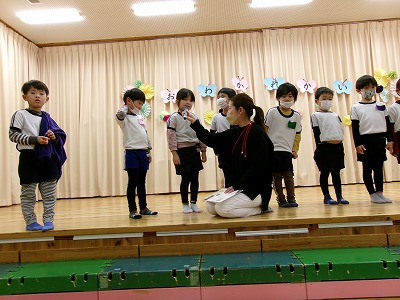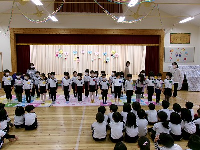 今週の土曜日に卒園式を控えたほし組さんに今までの感謝の気持ちを込めて、お別れ会を開催しました。