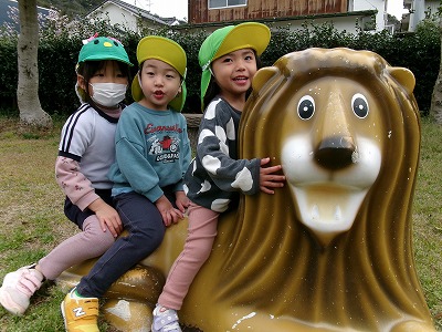 それではうさぎ組とほし組さんそして園長先生とライオン公園にしゅっぱーつ!!