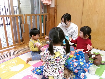 新入園の子どもたちもクラスに慣れ、友だちや保育教諭と一緒にうさぎ組で楽しく過ごしています。