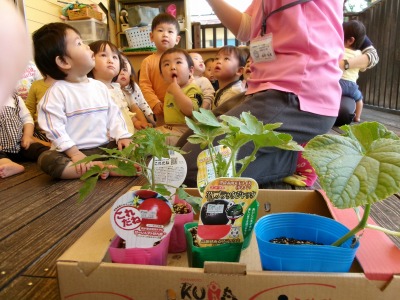 りす組は、トマト・きゅうり・スイカ・さつまいもを植えます😄