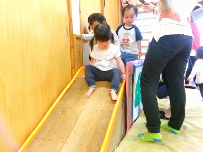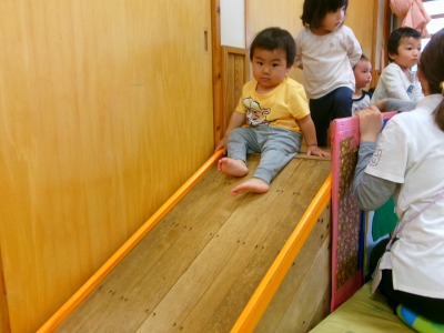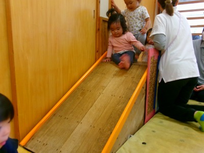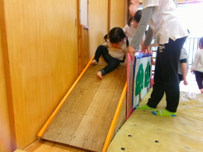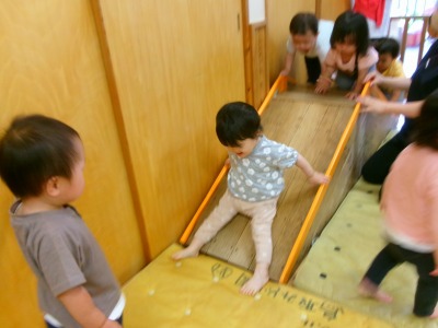 お部屋でもこんなに大きなすべり台で、しゅーん!!