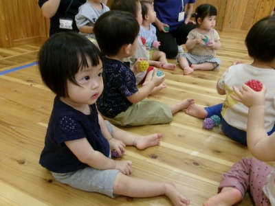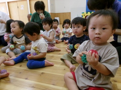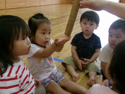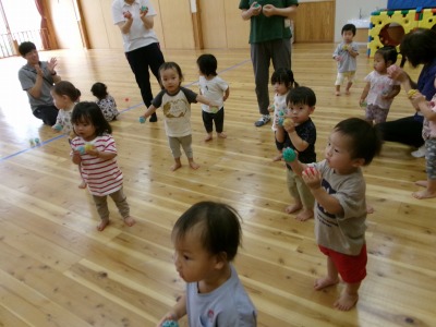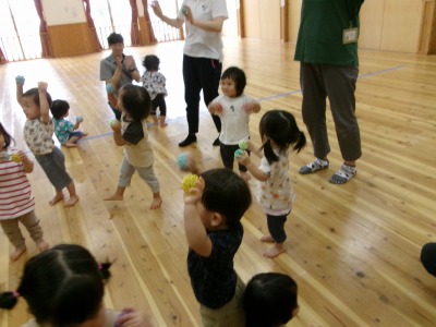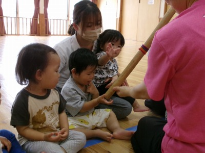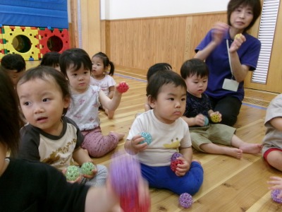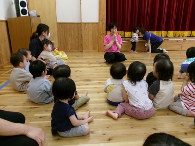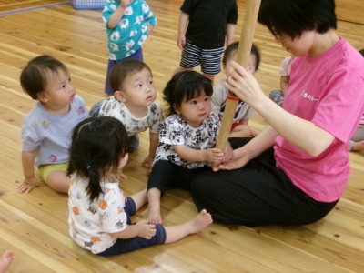 かたつむりのふれあいあそびや『キララ』を使った楽器遊びを楽しみました。